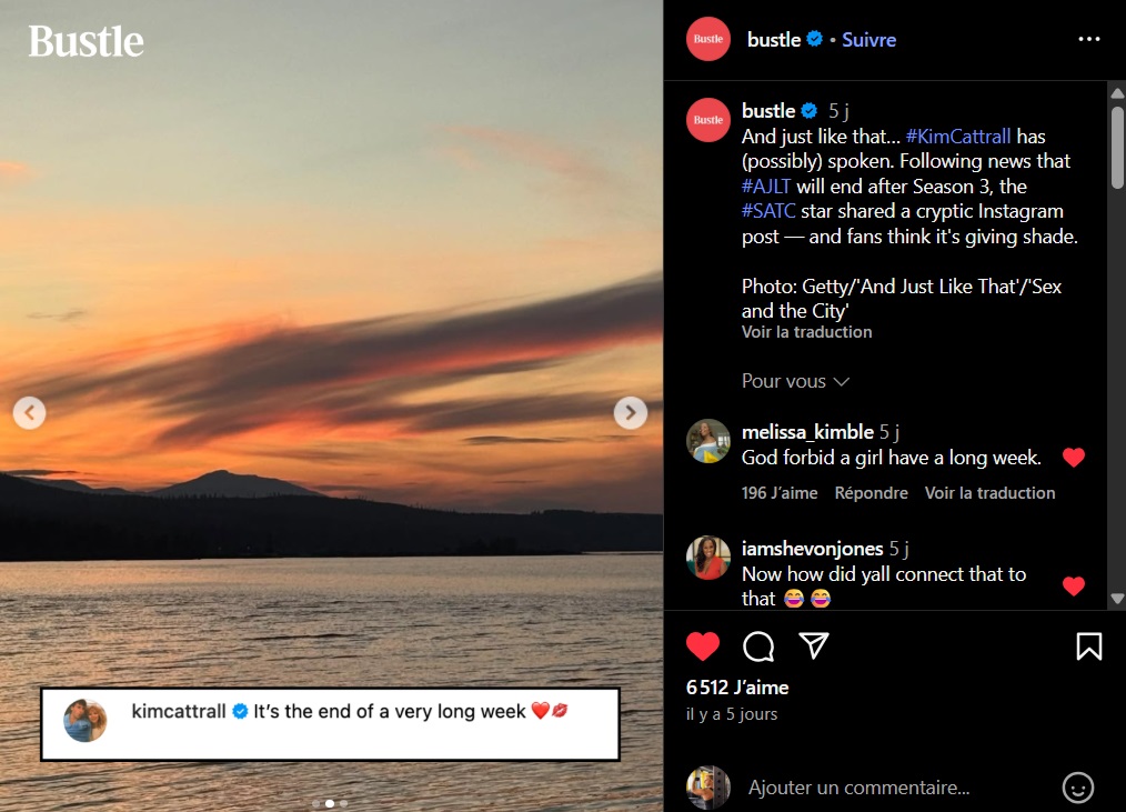 Както гласи българската поговорка: „Който се смее последен, се смее най-добре”, в този случай – Ким Катрал, вдигаща тост с чаша приказен коктейл, на някой чуден остров, радвайки се, че не бе част от ребуута на „И просто ей така”…