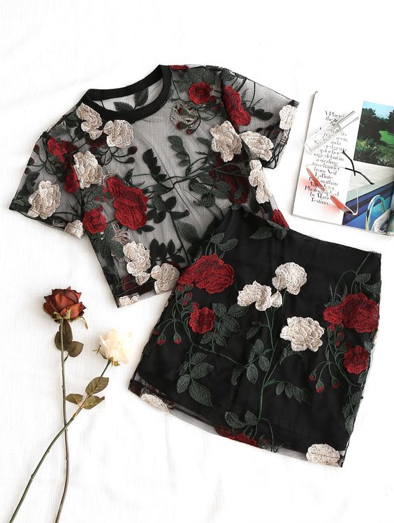 Този тоалет е изключително подходящ ако сте хем нежна и романтична, хем сте бунтарка, която не се страхува да наруши правилата. Тоалетът е едновременно сладък заради цветята и изключително привлекателен заради прозрачния топ.
