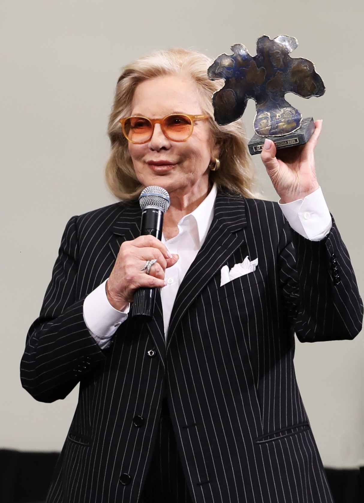 В отговор прочутата звезда развълнувано благодари на проф. Стойков и Академията за мода, и позира пред фотографите и операторите, държейки статуетката и сертификата за отличието в ръце. Самата скулптурна пластика е изработена от най-добрия български бижутер Анжело Красини по идея на проф. Стойков и на самия ваятел. Тя е във формата на смокинов лист – библейското облекло на Адам и Ева, обсипана с гравюри на такива световни модни икони, като Коко Шанел, Кристиан Диор, Джорджо Армани, Карл Лагерфелд, Джаки Кенеди, Лейди Даяна, Мерилин Монро и други.