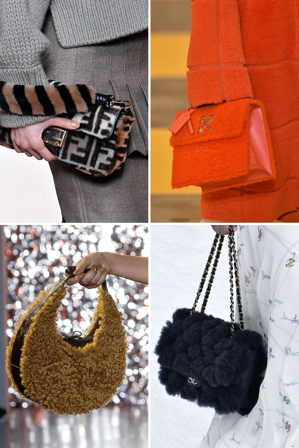 През тази есен ще можете буквално да гушкате чантите си, защото те не само ще са пухкави, но и топли. Материалите са естествени и изкуствени кожи с пухкави текстури. Аксесоарите ще бъдат актуални и през зимата.