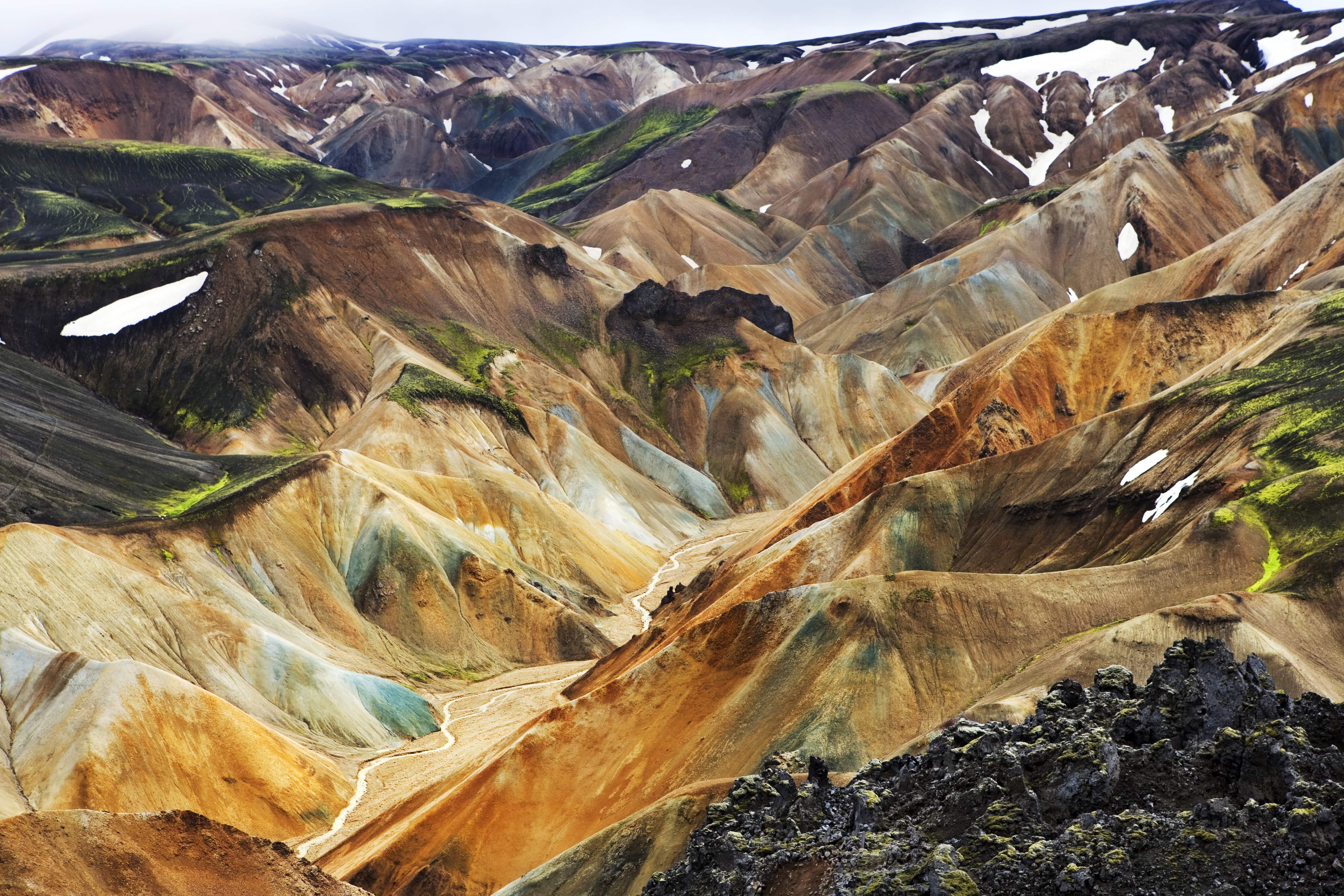 Дъгата, танцуваща в струите на гейзерите, сякаш е легнала върху планинта, което добавя екзотика на космическия пейзаж с покрити от лишеи склонове и полета от застинала лава. Младите и горещи вулкани в Страната на ледовете са създали риолитни скали с разнообразни цветове. До планината може да се стигне само с джип.