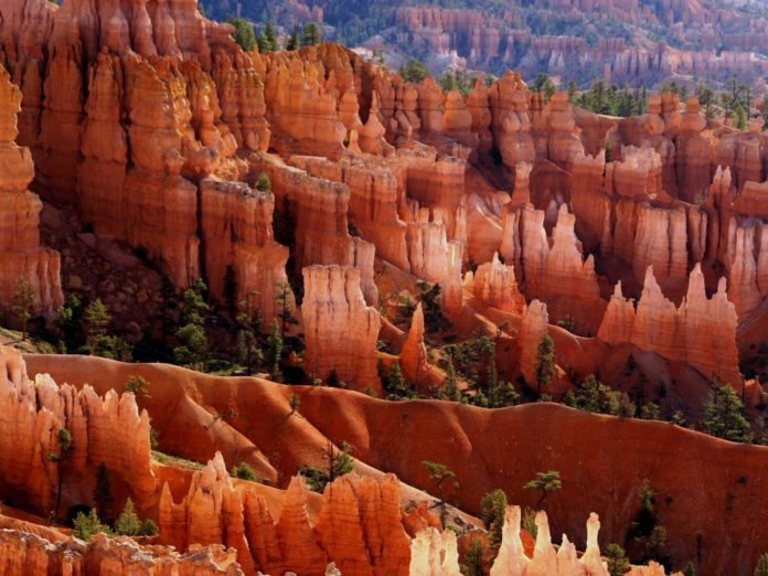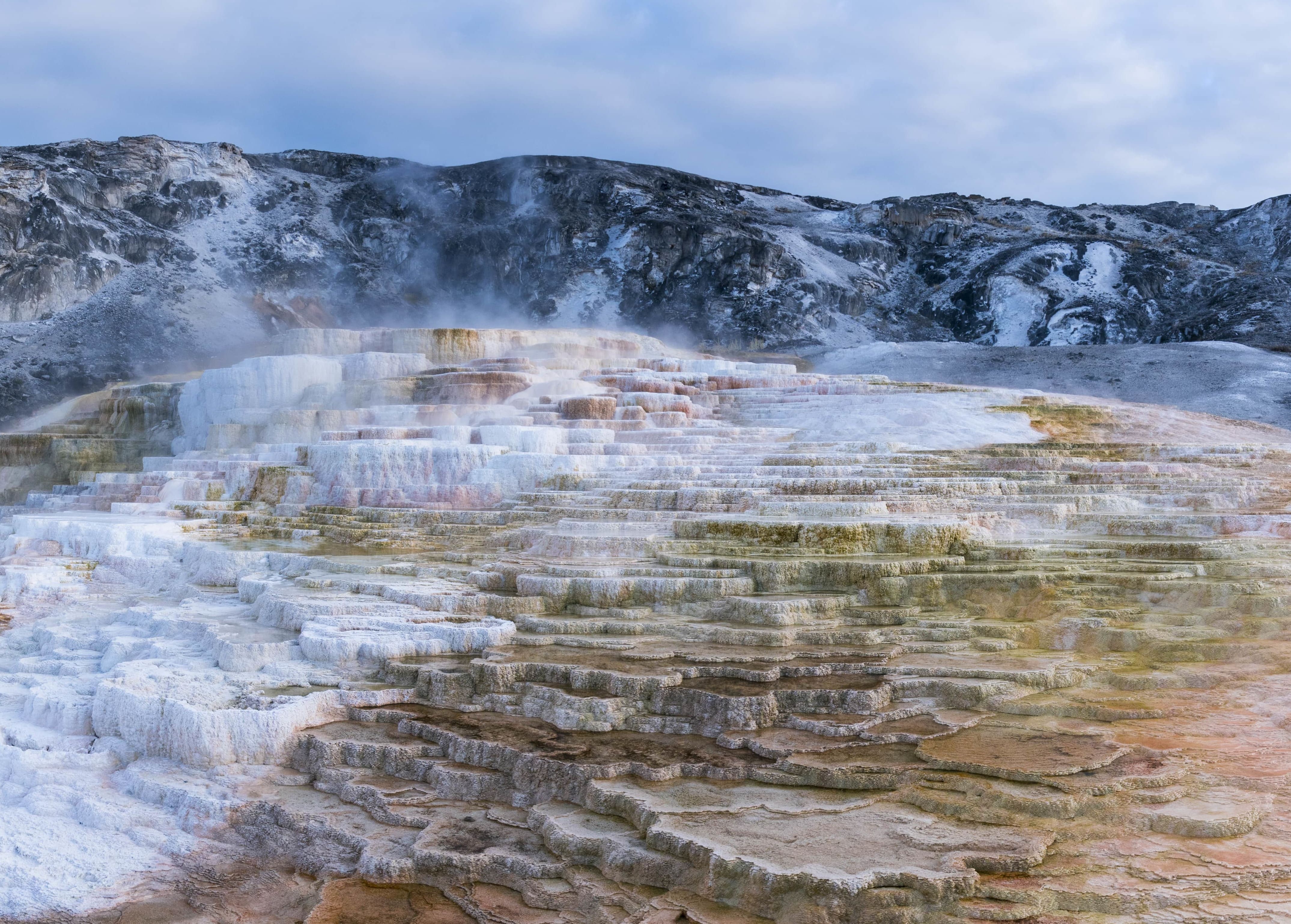 Водата, богата на калциев карбонат, е оставила свой отпечатък върху скалите образувайки в националния парк „Йелоустон“ травертинови тераси. Водораслите, живеещи в термалните басейни боядисват камъните в различни цветове. По пътя към изворите се срещат елени и стада от бизони.