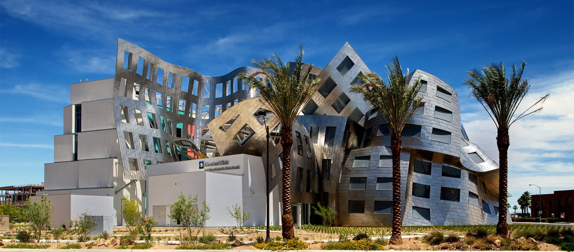 Идеята за основаването на центъра принадлежи на предприемача от Лас Вегас Лари Руво, чийто баща починал от усложнения на болестта на Алцхаймер. Тъкмо той намислил да покани известния архитект да изгради комплекса. Според Руво впечатляващият вид на сградата трябва да концентрира вниманието на широката общественост върху проблема с мозъчните заболявания и да привлече финансиране за неговите изследвания. Центърът се състои от две сгради, които коренно се различават една от друга по форма и функция, но работят като едно цяло, затова много критици ги сравняват с полукълбата на мозъка. Вътрешното пространство е изпълнено със слънчева светлина, проникваща през многото прозорци, а извитите очертания изглеждат еднакво причудливи и отвътре, и отвън.