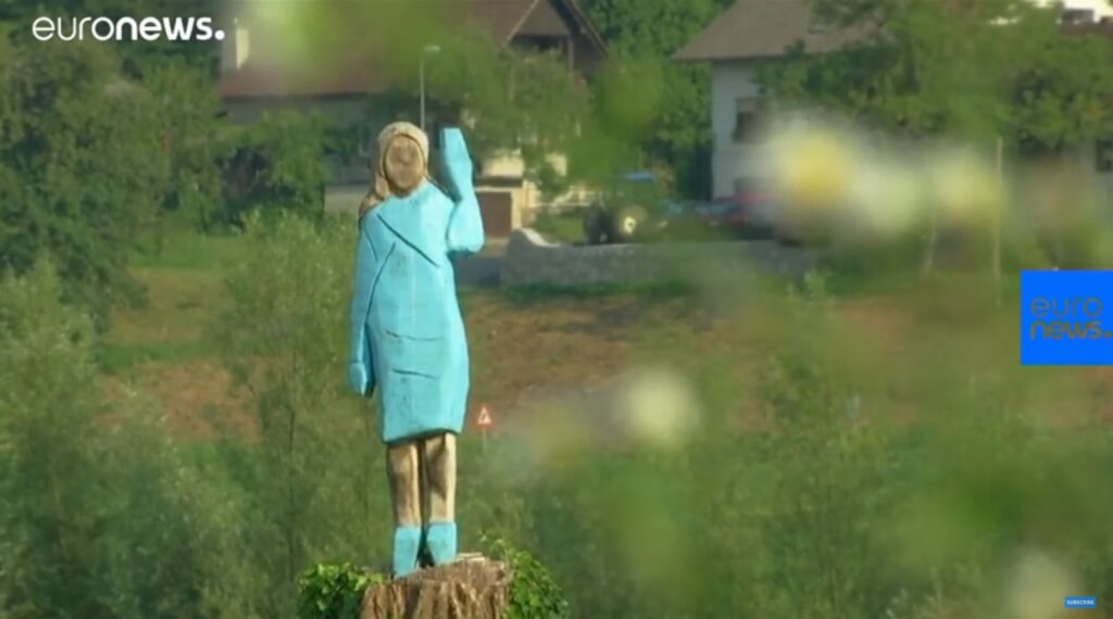 В Словения откриха дървен паметник на първата лейди на САЩ Мелания Тръмп. Статуята, изсечена от дърво, се издига близо до Севница, родния град на Мелания. Идеята за арт обекта принадлежи на американския художник Брад Дауни, известен с урбанистичните си скулптури и интервенции в градскотото пространство. Скулптурата на Мелания е част от дебютната му самостоятелна изложба в Словения под името This Echo.