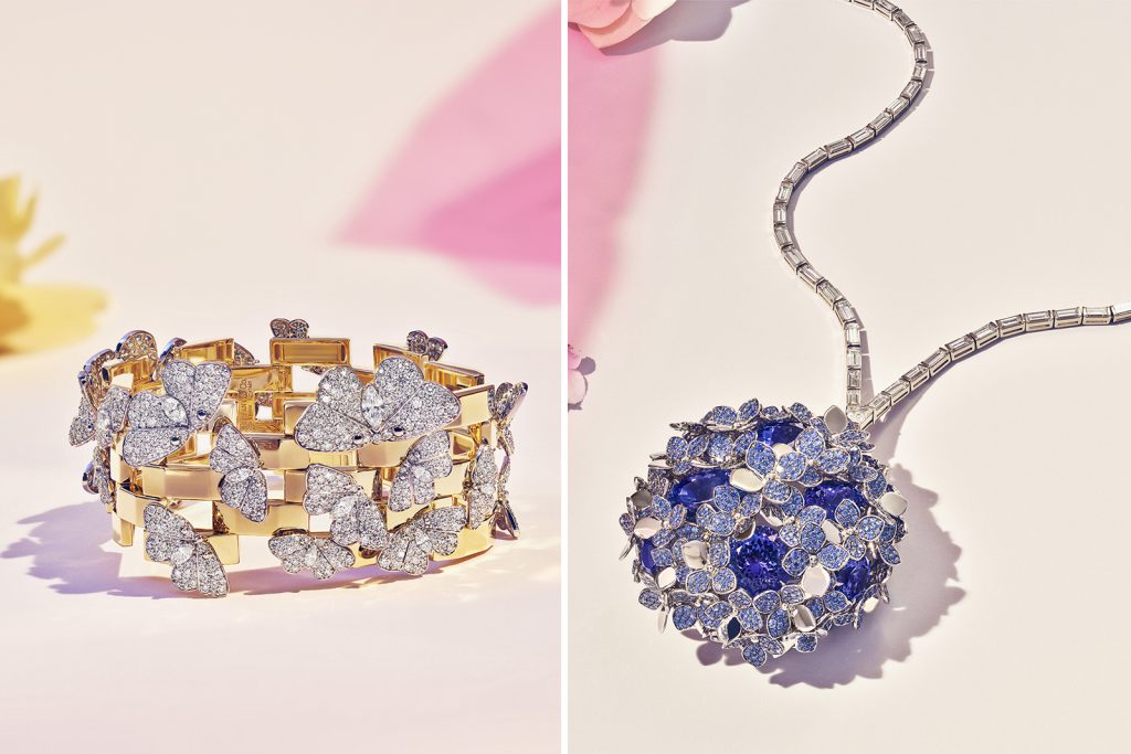 Хаотичността и красивата асиметрия на природата се обединяват с точната геометрия в пролетната тема, чрез цветовете на хортензията. Те са изобразени като натурални и в същото време архитектурни обекти, чиято палитра е обогатено от виолетовите и розови оттенъци на сапфири, турмалини и танзанити, образуващи плавни преходи от един цвят в друг. Усещането за лято е пресъздадено чрез ефимерните крила на молците, трептящи върху твърдата основа на гривните. А есенното настроение ни връхлита с лаконичността в дизайна, простотата на линиите, с играта на цветовете и формите на преплетените стебла и деликатните пъпки.