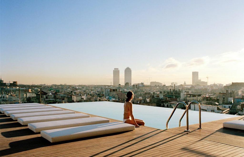 Основното предимство на терасата, намираща се на покрива на един от най-хубавите хотели в Барселона е басейнът, от който може да се любувате на гледки към историческия крайбрежен квартал Борн. Другото екстра е необичайното меню. Тук може да си поръчате традиционните испански тапас в кутии бенто е да похапнете направо на шезлонга. ЗА кухнята на хотела отговаря шеф Рамон Фрейкас, заслужил цели две звезди „Мишлен“.