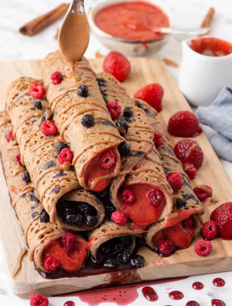 Лесни, здравословни пълнозърнести вегетариански палачинки, които са питателни и са приготвени с прости пълнозърнести хранителни съставки. С тях ще получите една вкусна закуска, която ще се хареса на цялото семейство.